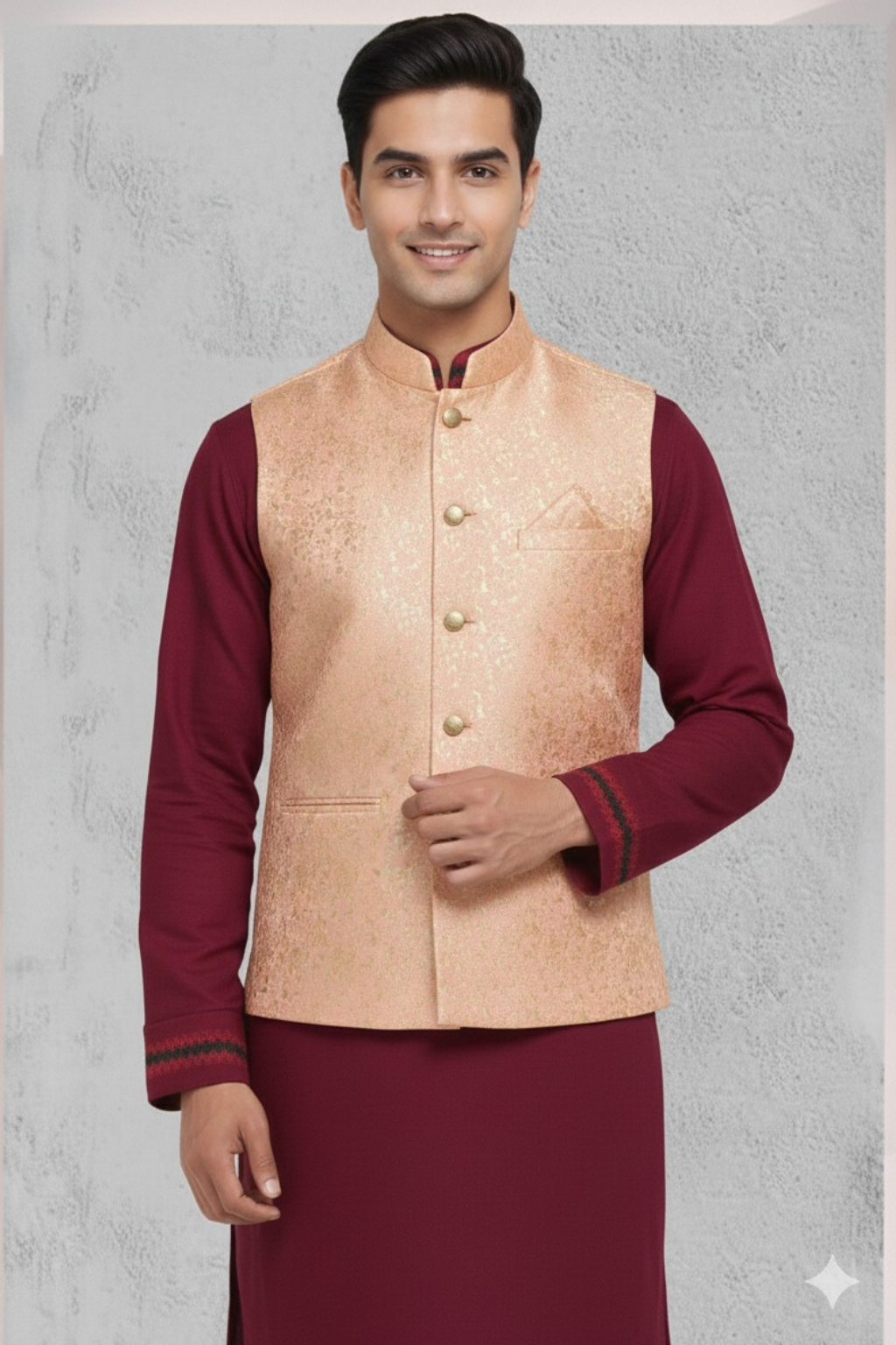 Maroon Panjabi and Black Koti Set for a Timeless Look(Maroon & Black)